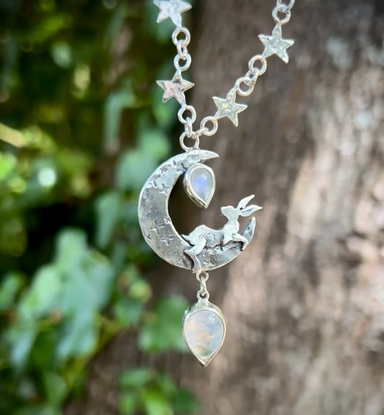 There are three stars in the chain along with a little silver feather.