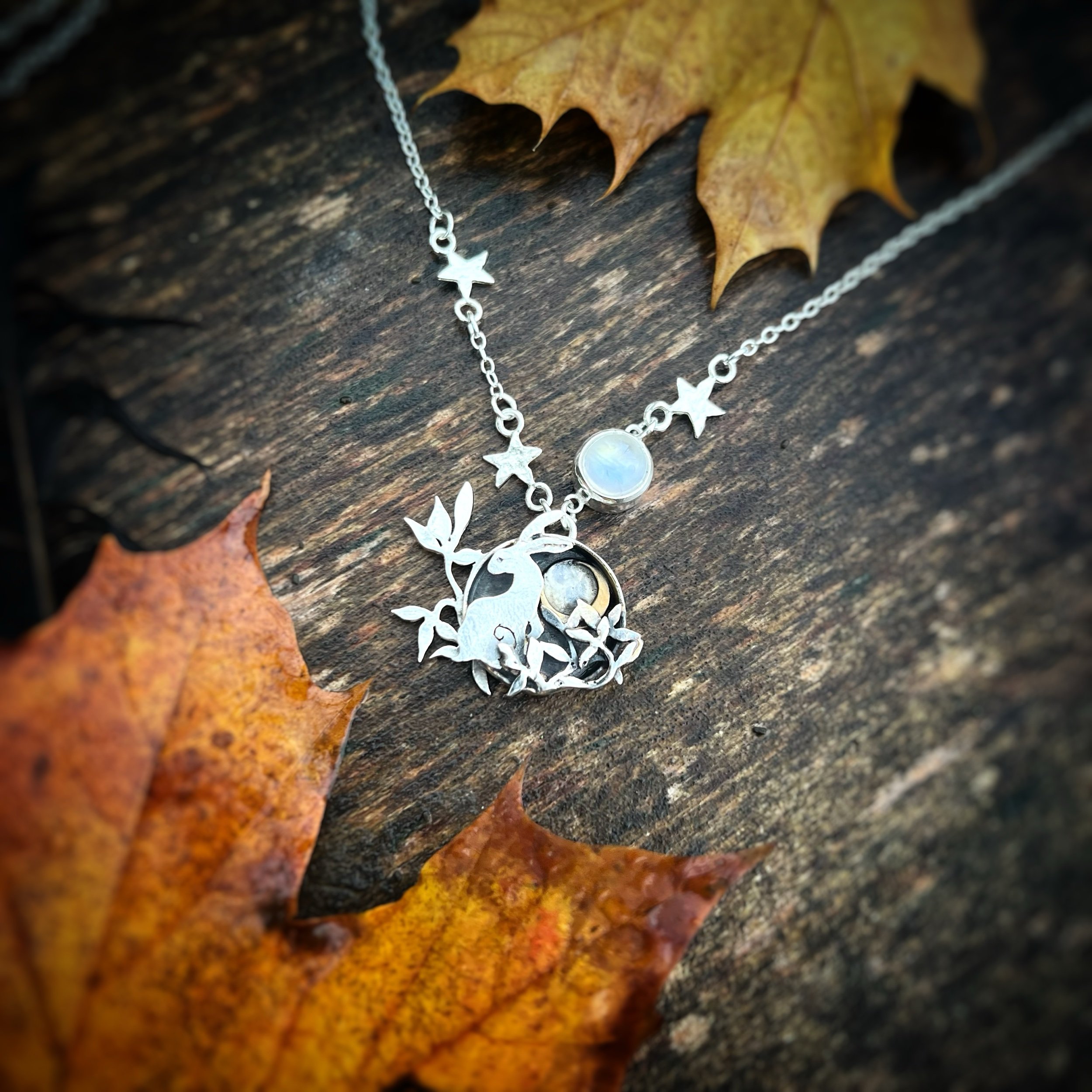 She is solid silver with an 18ct gold plated crescent moon and a stunning rainbow moonstone.
