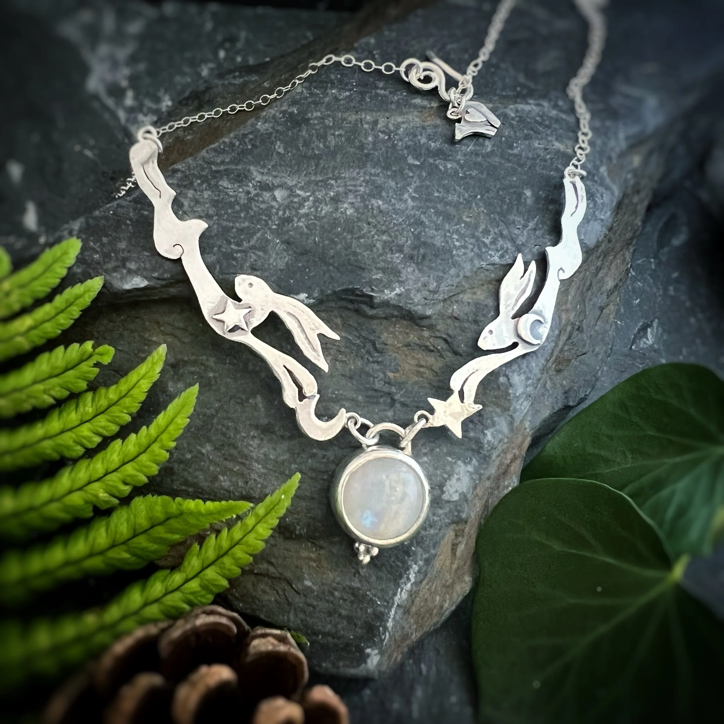 This necklace was born from such a trip when Al found the most perfect ammonite hidden among the pebbles and we decided to sand cast in in silver …